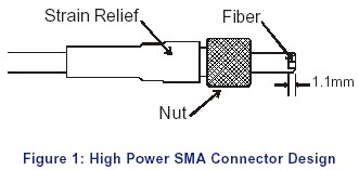 1米長,3mm不銹鋼護(hù)套鎧裝光纜,940/1000um紅外可見高功率光纖跳線,輸入輸出端為高功率SMA905連接器。 |