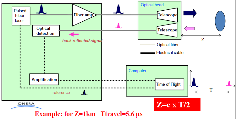 ? 雷達的發(fā)射機發(fā)出激光脈沖,通過光學系統(tǒng)望遠鏡照射目標,類似的光學系統(tǒng)“接收”測試目標的散射光,通過光電探測器轉換成電信號處理。
