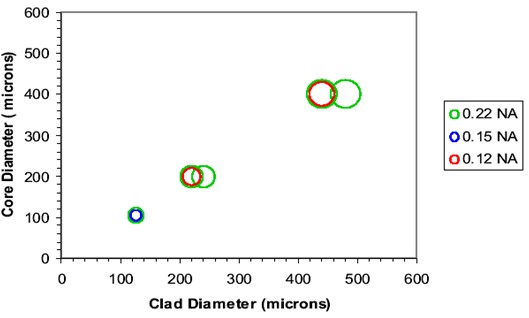 Coherent/Nufern公司提供各種折射率階躍型特種多模光纖,用來服務(wù)光纖耦合半導(dǎo)體激光器,單管激光器(Single Emitter)光纖耦合以及二極管激光到光纖的耦合傳輸市場,功率傳送光纖(Power Delivery Fiber)和市場上絕大多數(shù)用于激光功率傳輸?shù)墓饫w兼容。200um芯徑多模功率傳送光纖有200/220um和200/240um兩種類型,數(shù)值孔徑分別為0.12和0.22。 Coherent/Nufern公司具有全面的功率傳送光纖的供貨能力,例如纖芯為400um或者更大纖芯的特種多模光纖可以根據(jù)用戶的要求提供。|