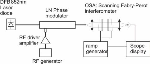 An 光波導(dǎo)在鈮酸鋰晶體中擴(kuò)散,平行于光波導(dǎo)的高速電極被集成在基底表面。銫原子的激光 冷卻可以通過(guò)在電極施加 4.6GHz 的正弦微波電壓得到。由于電光效應(yīng),基于 852nm 載波激光獲得相差 9.193GHz 光學(xué)邊帶。