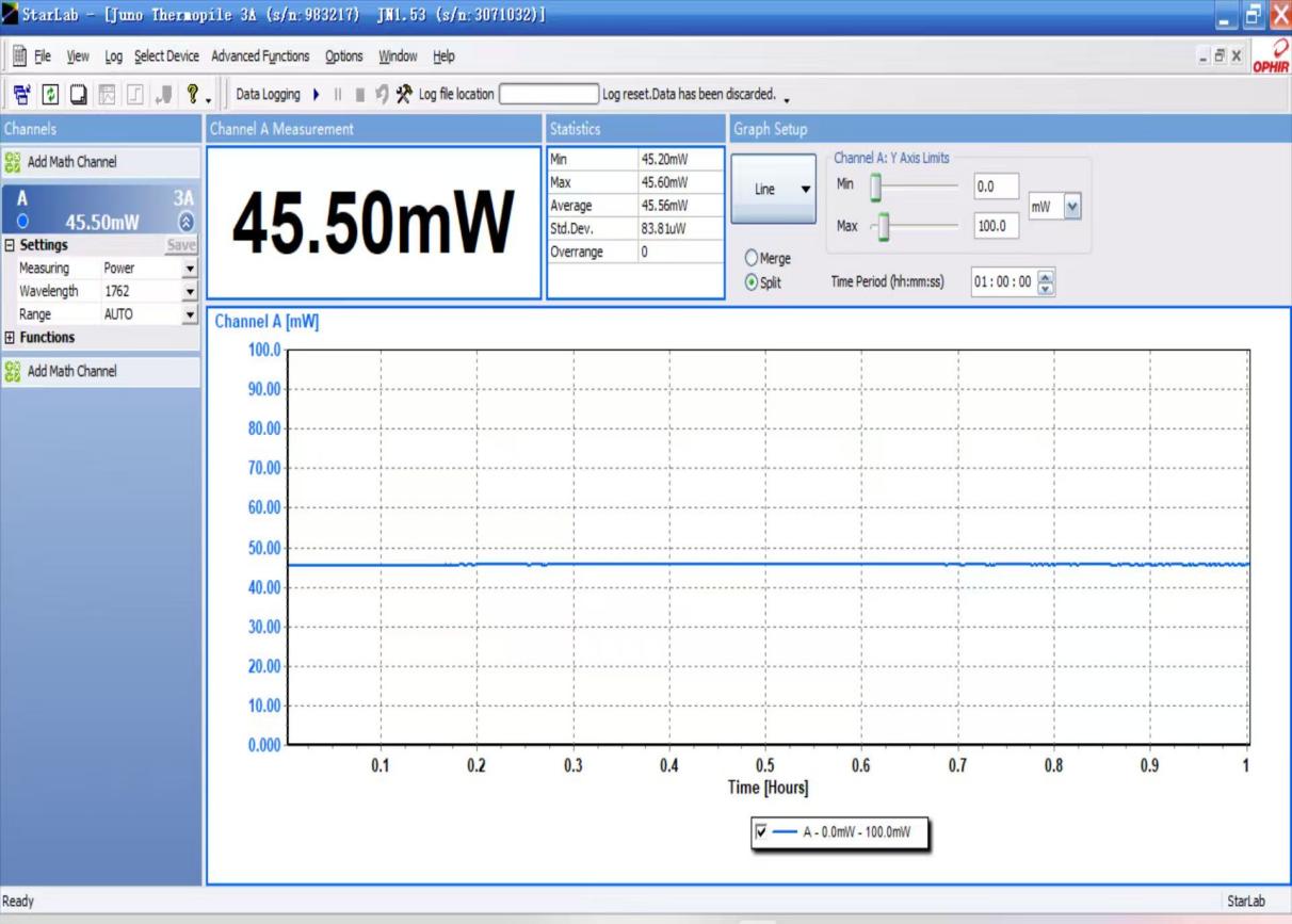 ▲ 圖2: 線寬圖 ▲ 圖3:功率穩(wěn)定性圖:<1%