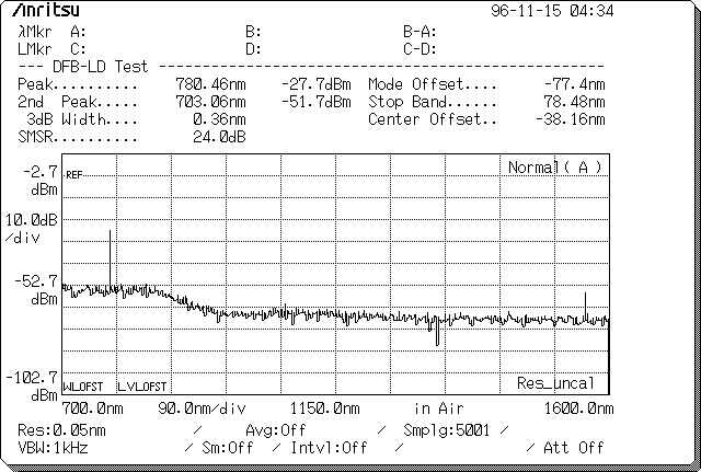 ▲ 圖一:測(cè)試輸出端光譜圖@1W ▲ 圖二:測(cè)試監(jiān)測(cè)端光譜圖