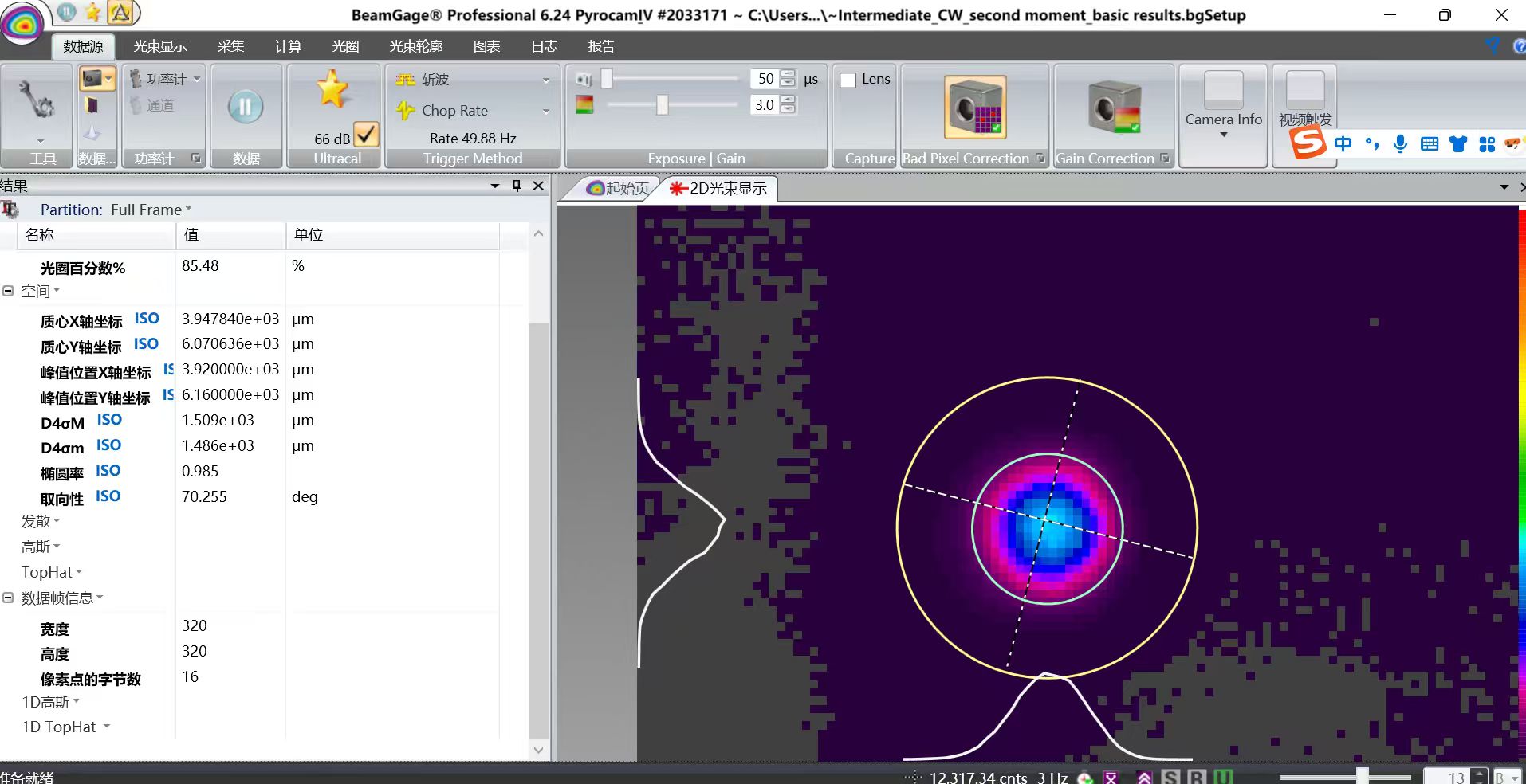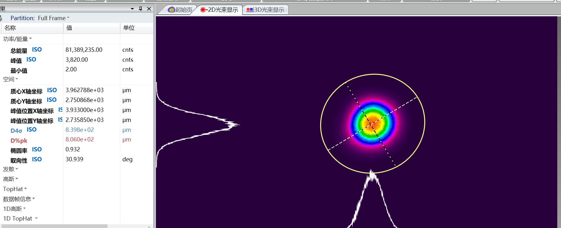 ▲ 圖5:532nm輸出光斑大小和光斑圓度 ▲ 圖6:532nm輸出光斑大小和光斑圓度