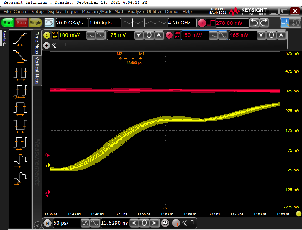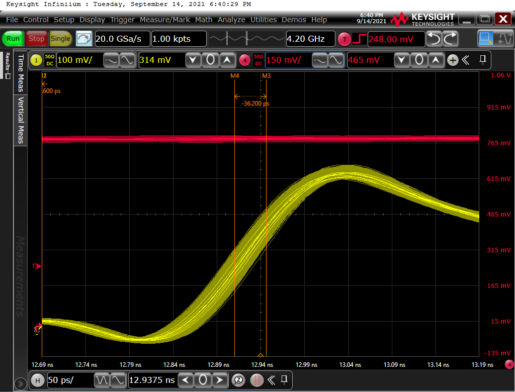▲ 以上兩張是延時(shí)抖動(dòng),也小于50ps,非常優(yōu)秀