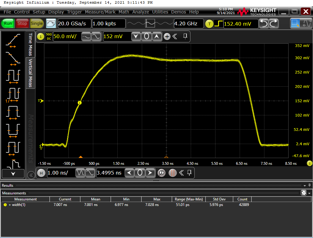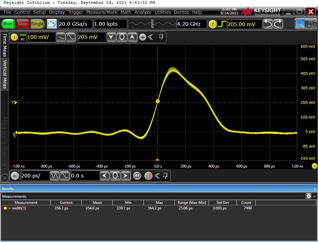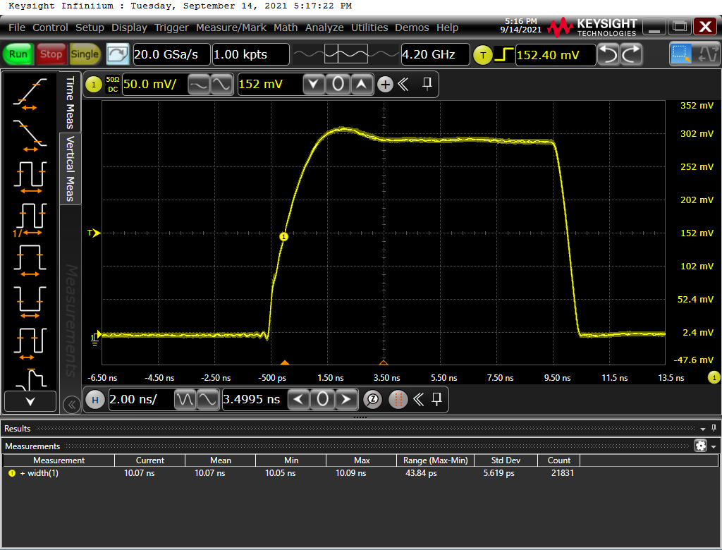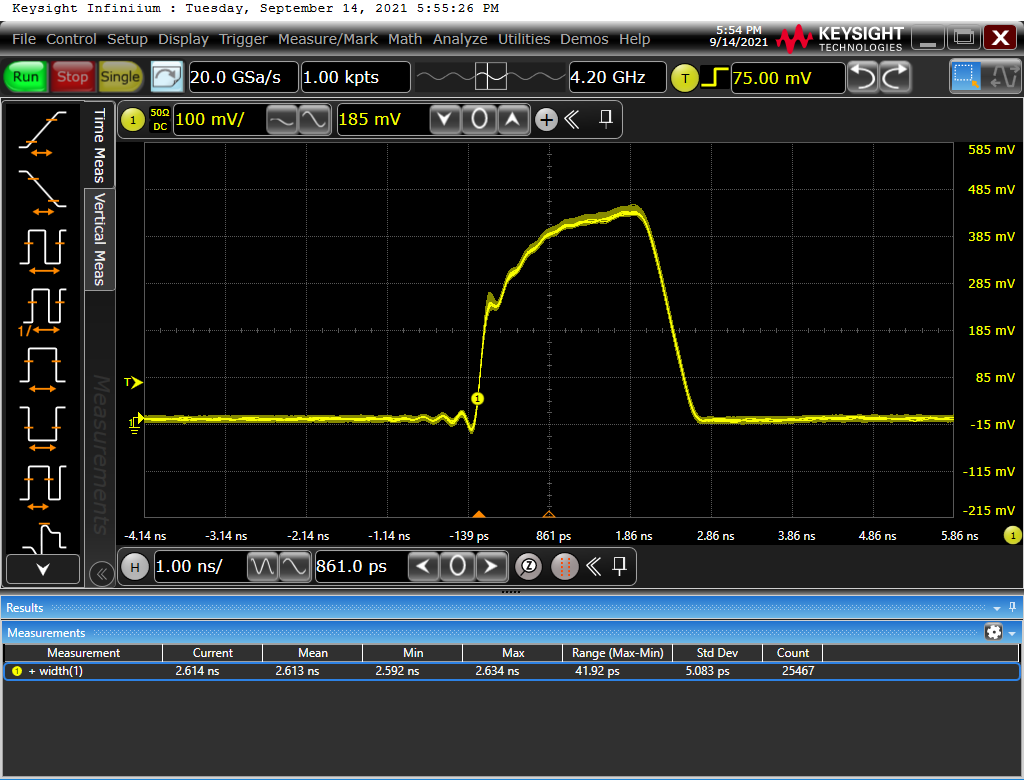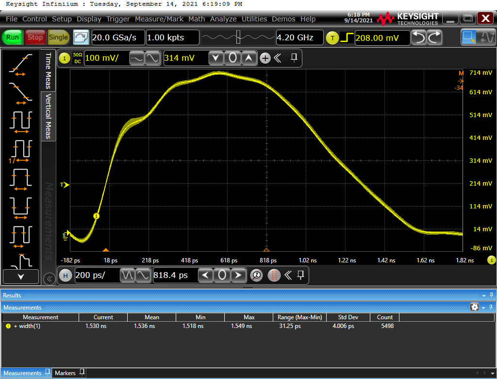 ▲ 從以上幾張看出脈沖脈寬變化小于50ps.