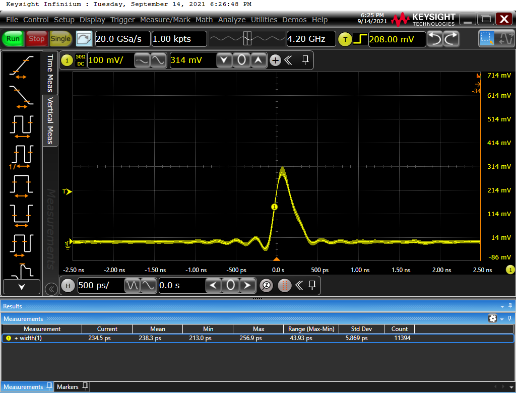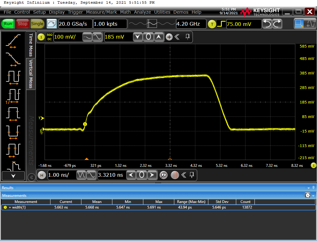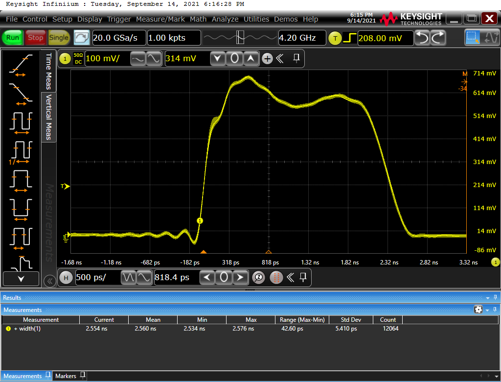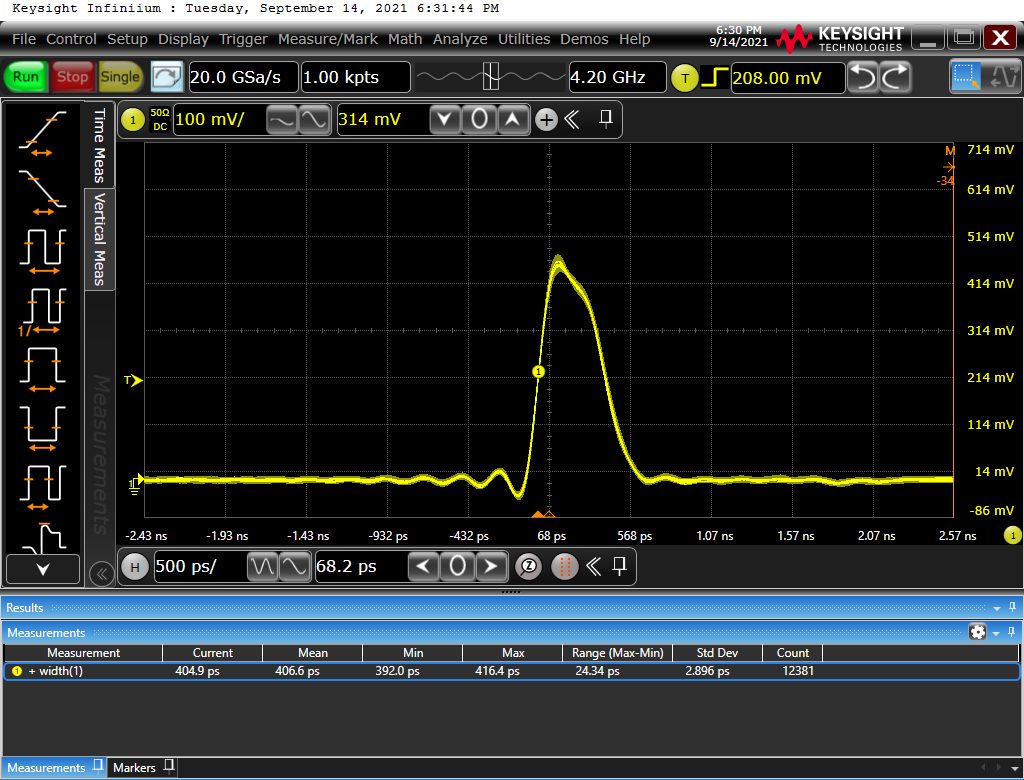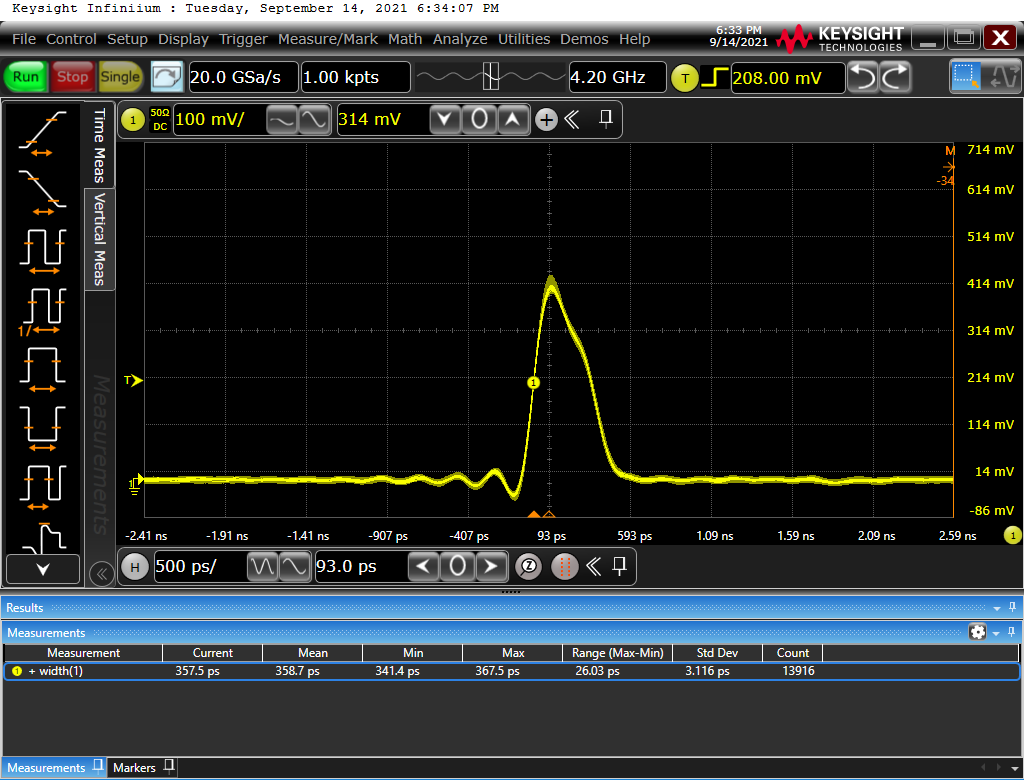 ▲ 從以上幾張看出脈沖脈寬變化小于50ps.